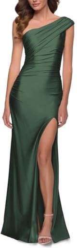La Femme One Shoulder Shiny Ruched Jersey Gown With Slit In Emerald At Nordstrom, Size 10