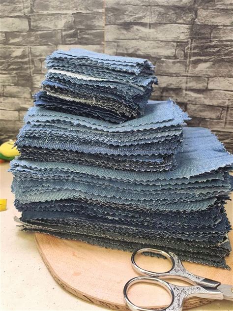 Recycled Denim Scraps Fabric Bundle Junk Journal Kit Patchwork Quilt Fabric Scraps Applique Visible Mending Slow Stitch Kit Jeans Charm Pack
