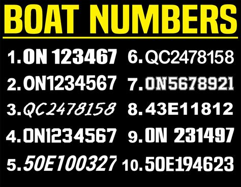 - Boat Registration Numbers