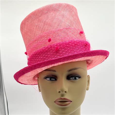 Handmade Pink Sinamay Top Hat, Derby Hat, Special Occasion