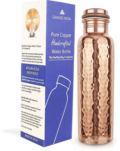 Gangesindia® Pure Copper Water Bottle, Traditional Hammered Design, (1 Lt/34 Oz) Handcrafted Vessel For Ayuveda Health Benefits